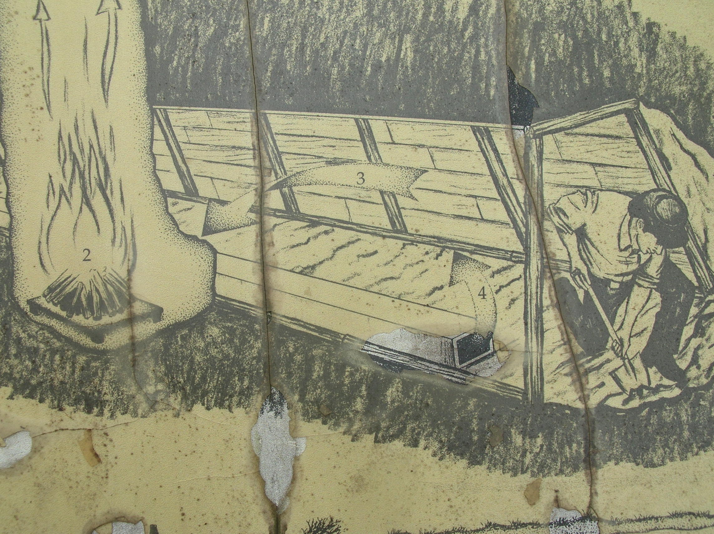 The ventilation shaft which allowed clean oxygenated air to enter the lengthy tunnel and keep the miners with fresh air was a masterpiece of ingenuity. Working in the same manner as the draft for a home stove, The fire burning outside the tunnel actually pulled it’s air from deep within the diggings, thus setting up a constant flow of air into the mouth of the tunnel and keeping the miners alive.