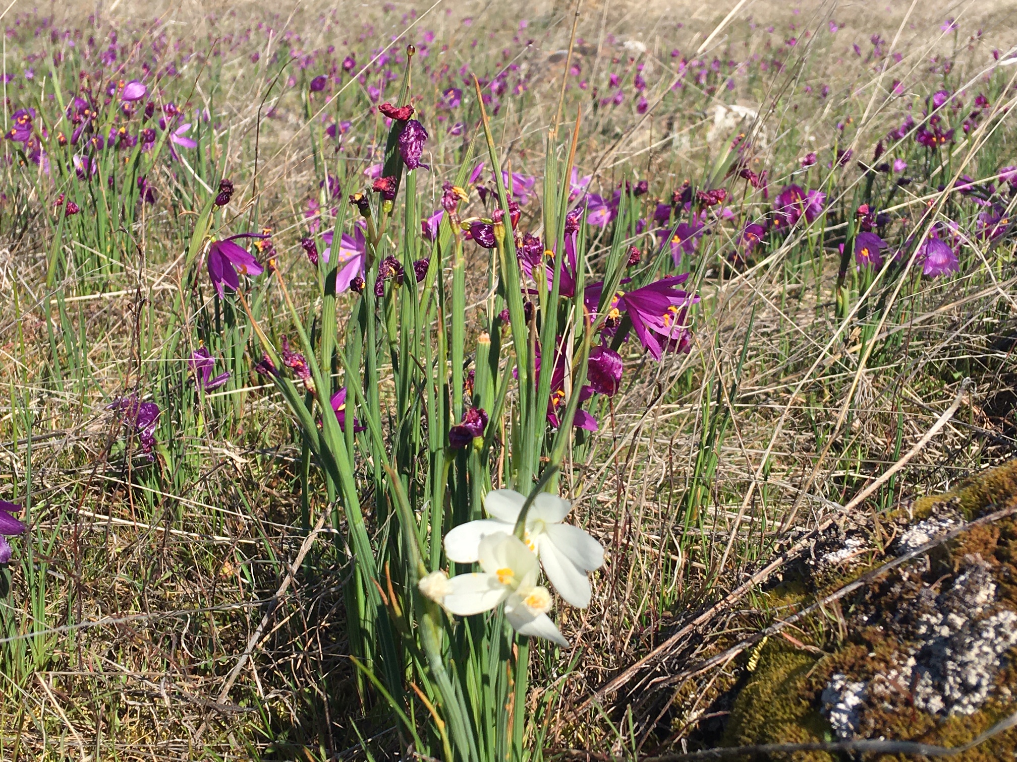 A Chilly Day, but flowers don’t mind! Yellow Bells, Buttercups, Grass Widows (purple and white) Or, on the Washington side of the Columbia there is another great place to see Spring in action.